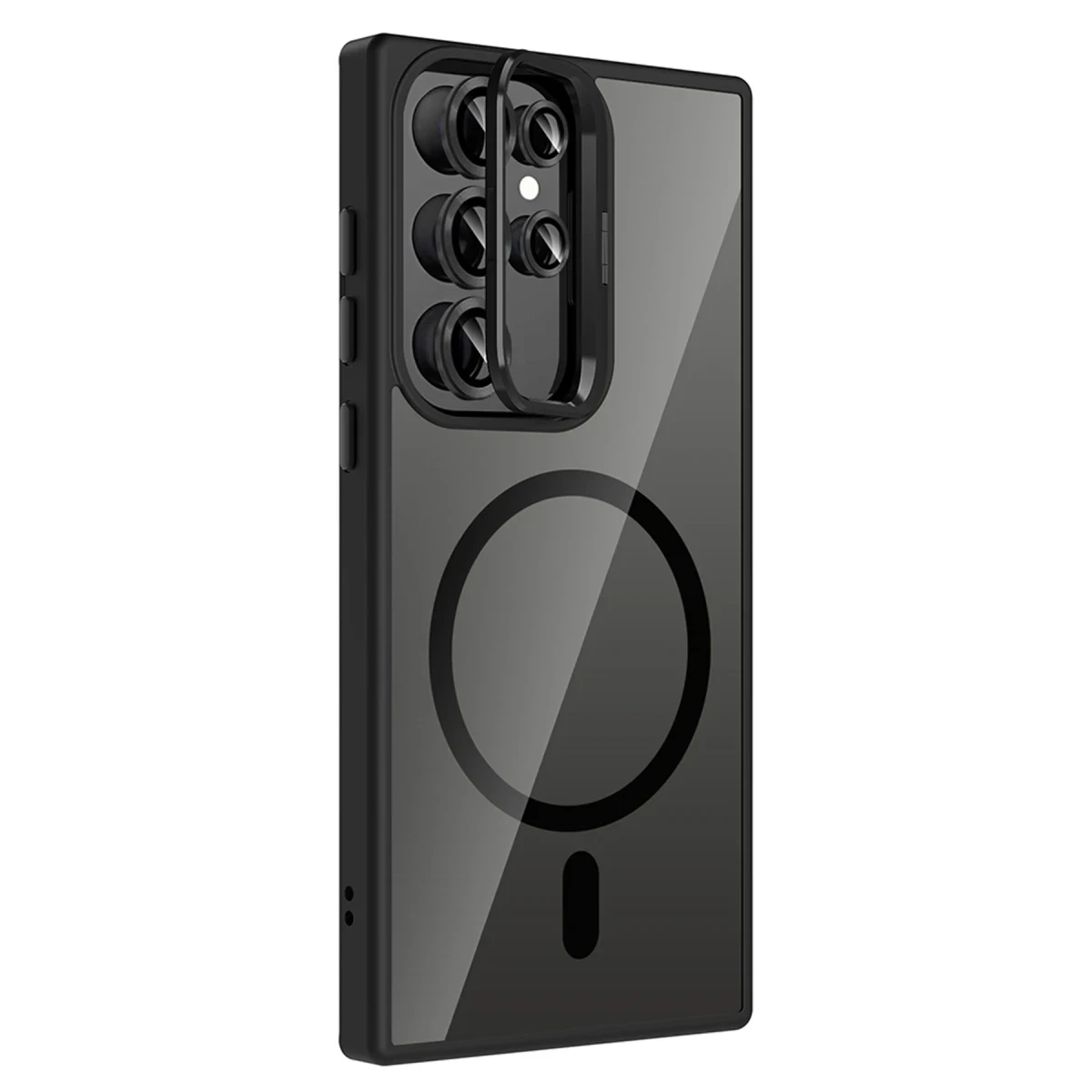 Joy Tekno Remim Lensli MagSafe Standlı Kılıf, şeffaf yapısı sayesinde telefonunuzun orijinal görünümünü gözler önüne serer, tarzınızdan ödün vermeden koruma sağlar.