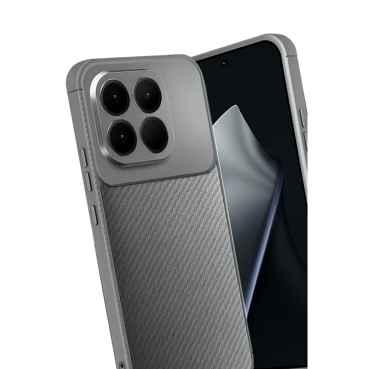 Karbon fiber desenli mat dış yüzey, hem estetik hem de fonksiyonel bir deneyim sunar. Modern ve sportif görünümüyle cihazınıza güçlü bir stil kazandırırken, yüzey dokusu sayesinde parmak izi ve leke oluşumunu engeller.