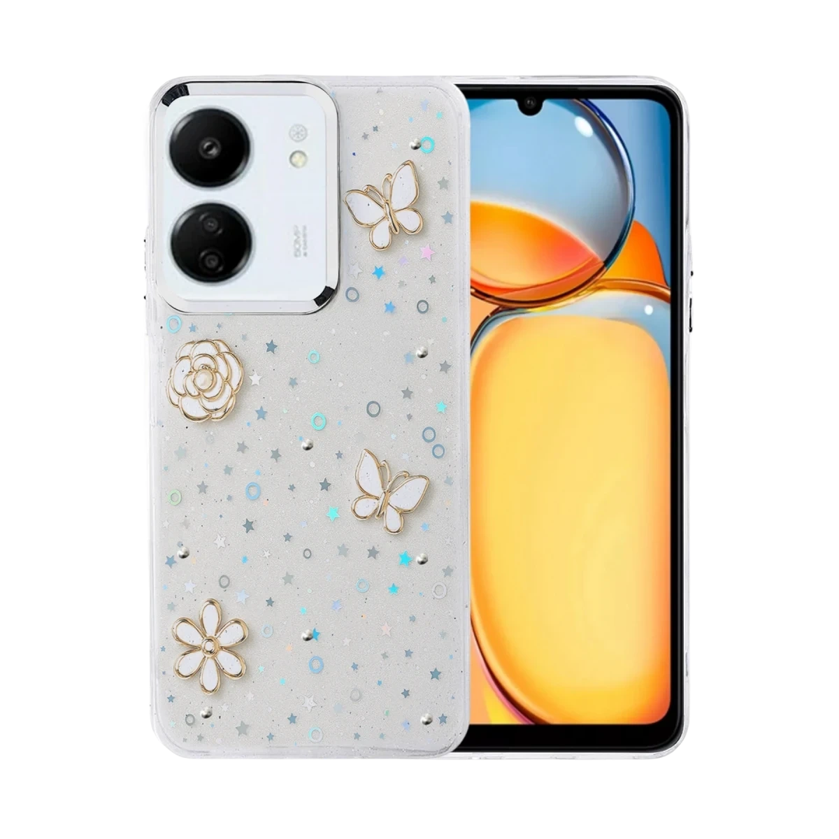Fiyonk, yıldız, kelebek, lale, çiçek, kalp ve gül gibi zarif detaylarla süslenmiş bu kapak; simli, şeffaf tasarımıyla estetik ve korumayı bir araya getiriyor. Telefonunuzu yalnızca dış etkenlerden korumakla kalmaz, aynı zamanda ona göz alıcı bir stil kazandırır. Günlük kullanımda dikkat çeken tasarımı sayesinde cihazınızın şıklığı öne çıkar.