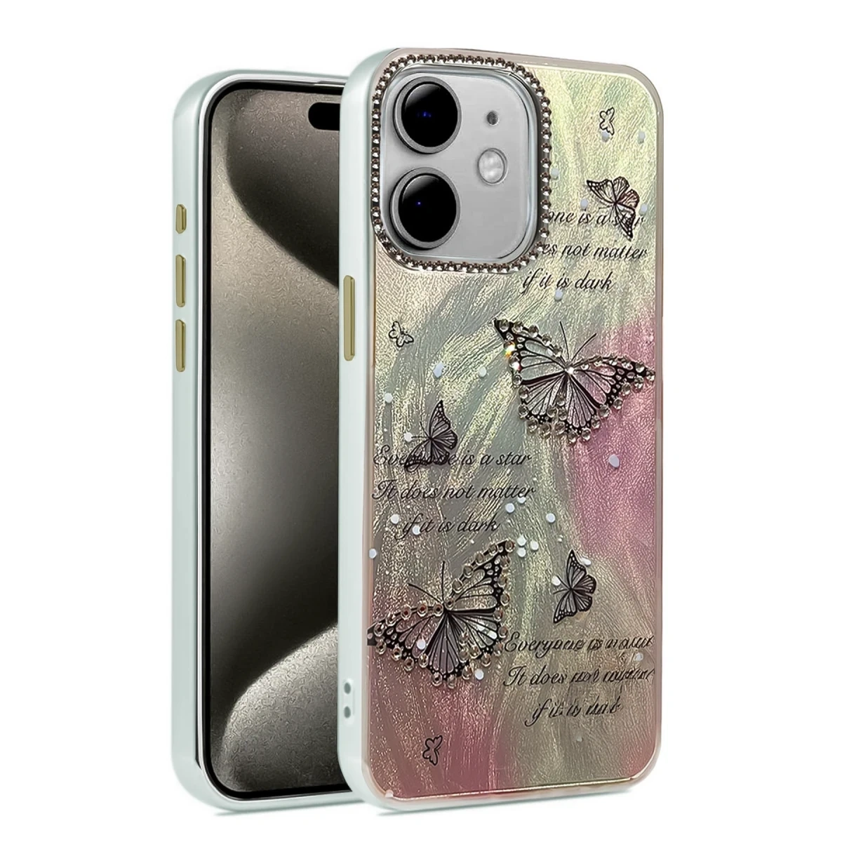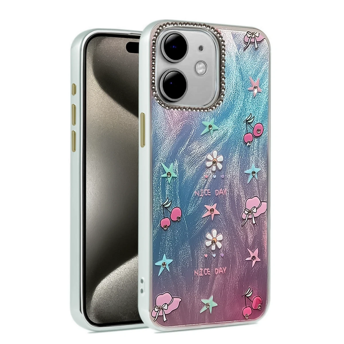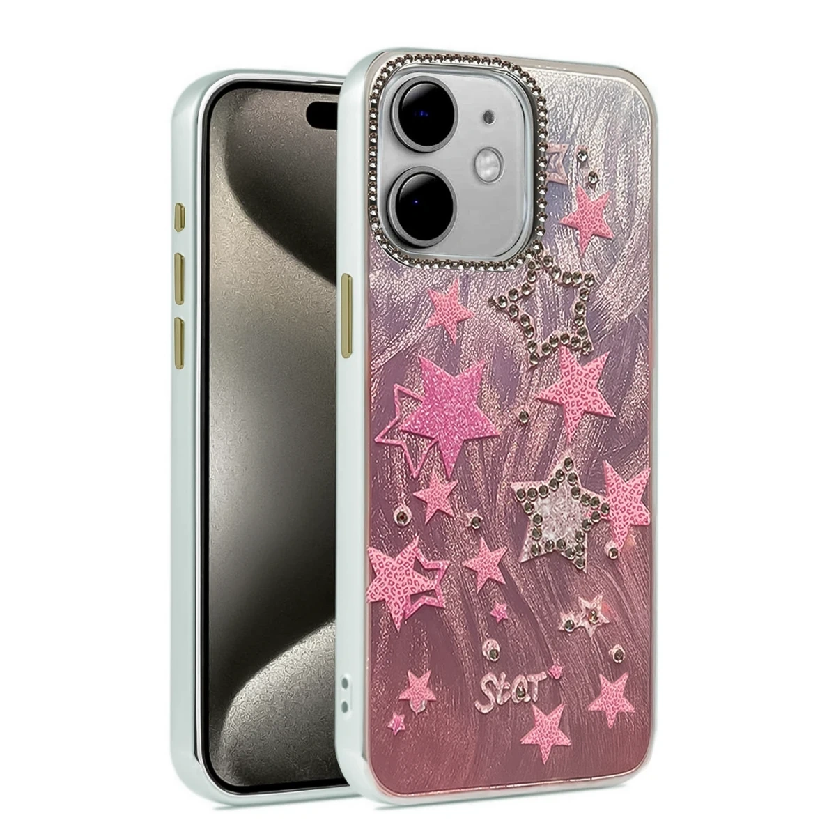 Kamera çevresinde yer alan parlak taş detaylar, hem zarafet hem de fonksiyonellik sunar.