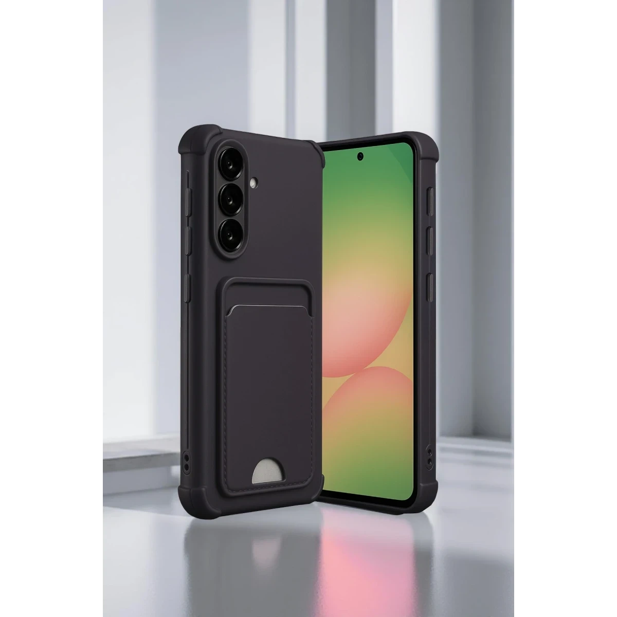 Yükseltilmiş kenar yapısı, ekran ve kamera lenslerini düz yüzey temasına karşı korurken, köşe bölgelerdeki kalınlaştırılmış silikon yapılar cihazın darbe alma riskini minimize eder.