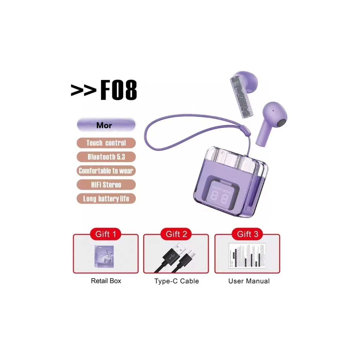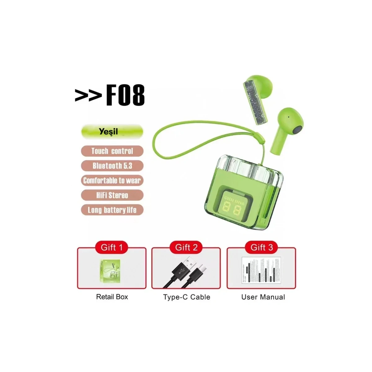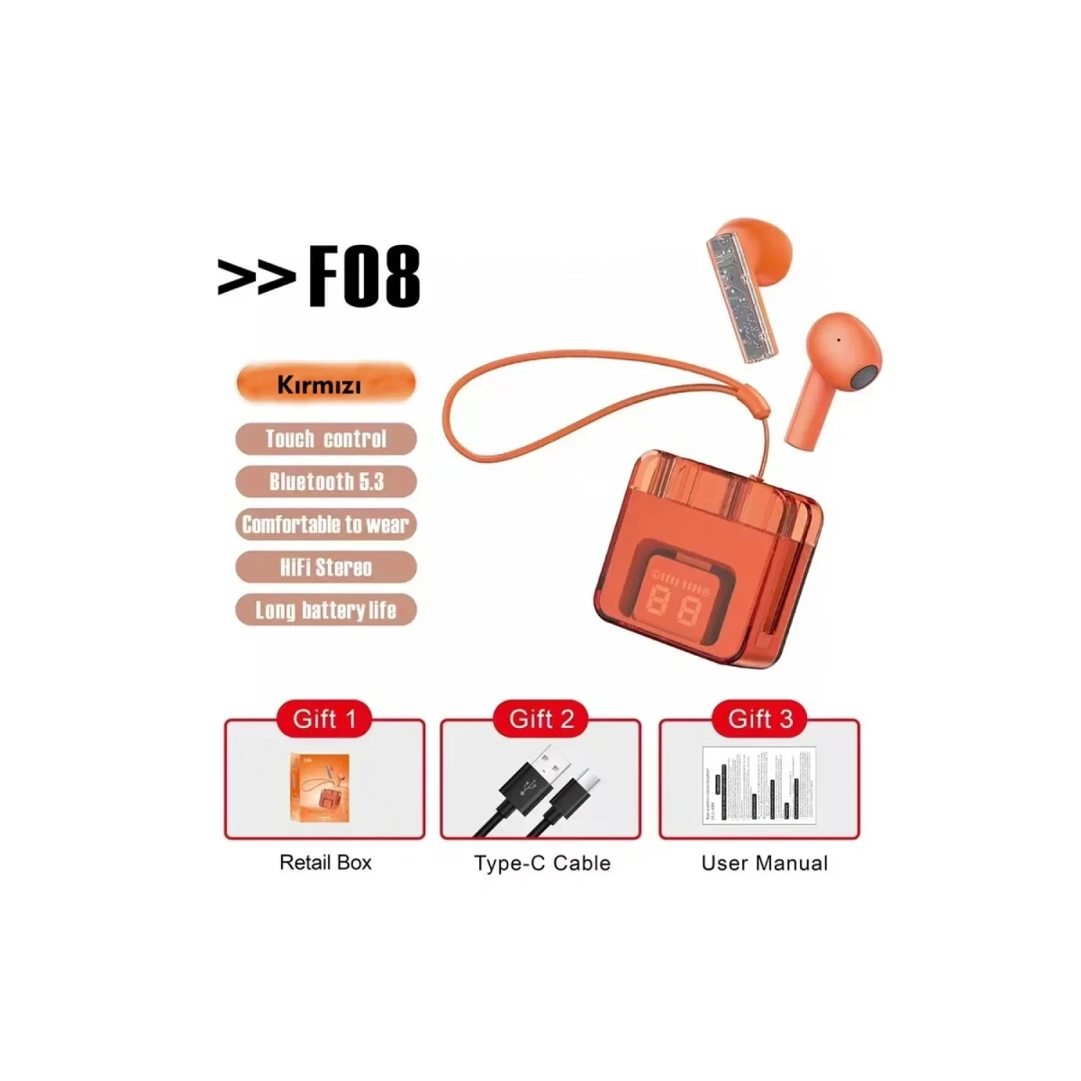 Karler Bass F08 Dijital Şarj Göstergeli TWS Bluetooth Kulaklık