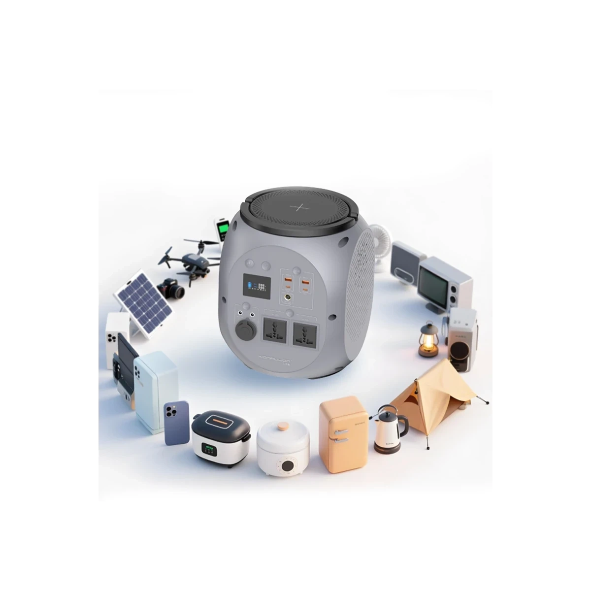 Çeşitli cihazlarla uyumlu 600W güç kaynağında 2 AC çıkışı (600W/220V), 1 araç şarj portu (12V), 2 Type-C portu (45W), 2 USB portu (18W) ve kablosuz şarj (15W) gibi çoklu bağlantı seçenekleri bulunur. İhtiyacınıza göre her türlü cihazı şarj edebilirsiniz.