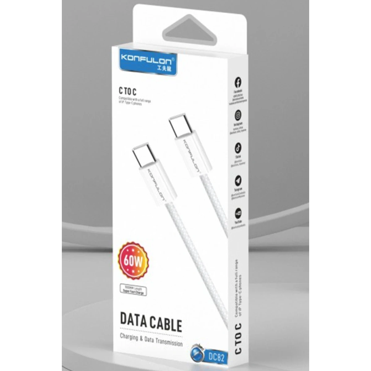 Konfulon DC82 1M 60W Type-C to Type-C PD Hızlı Şarj Kablo