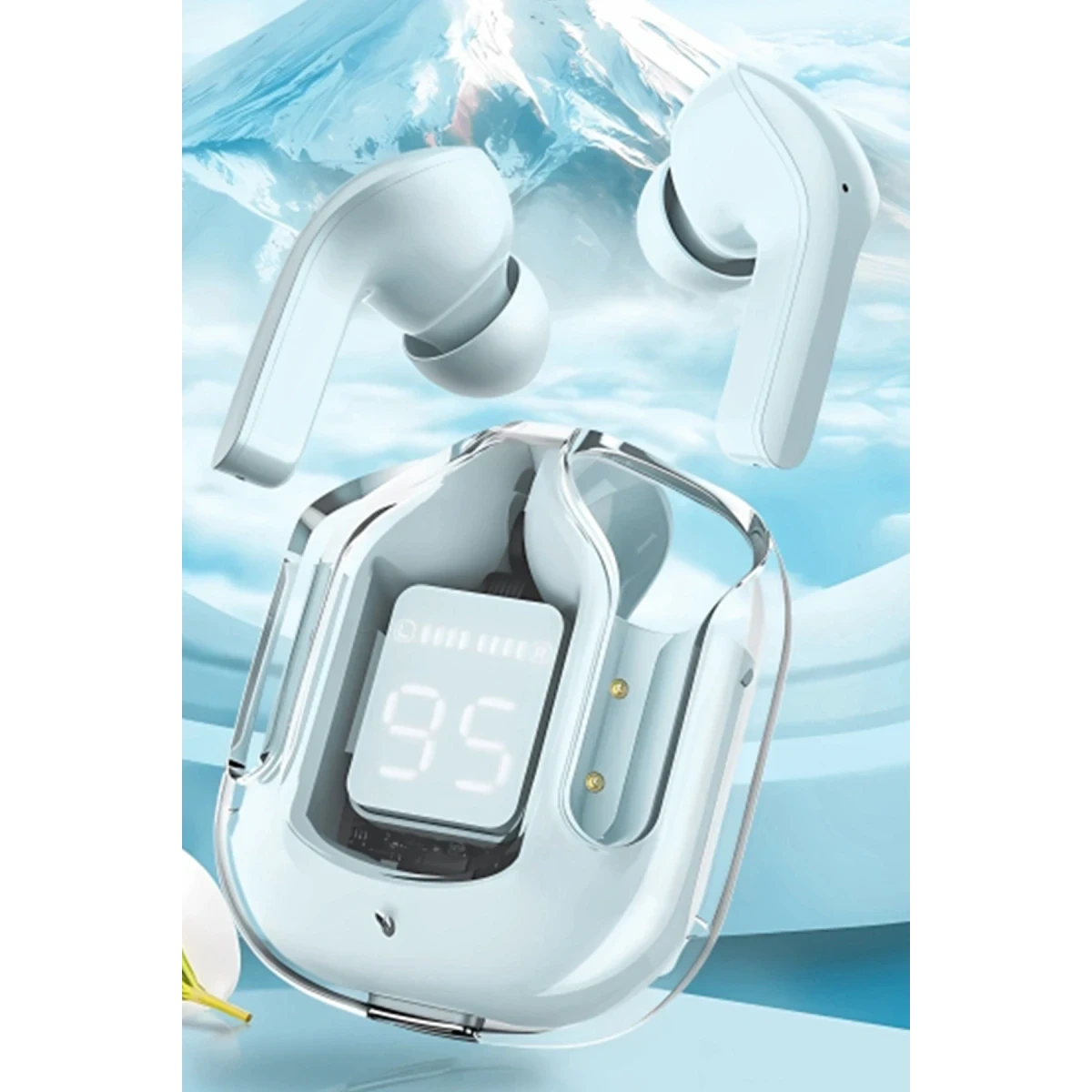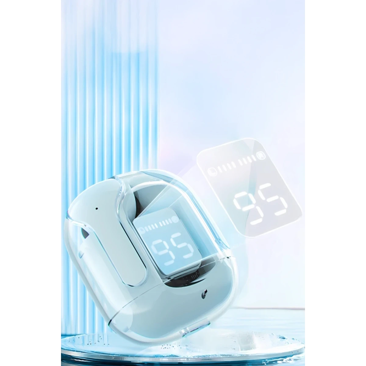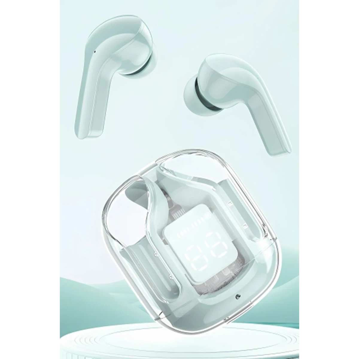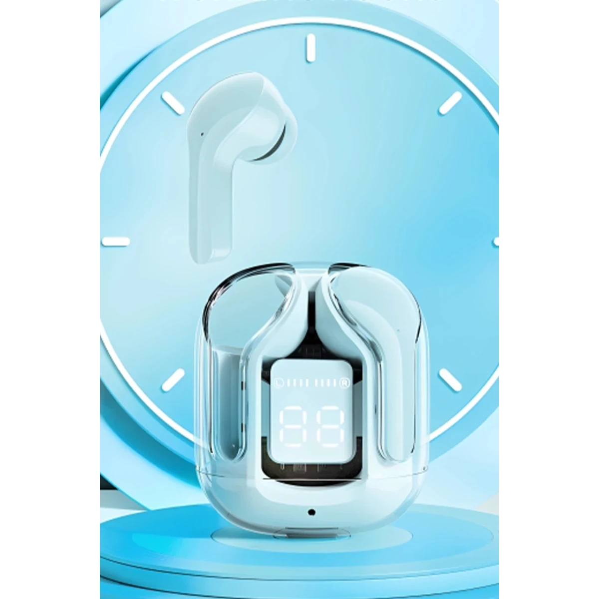 Bu kulaklıklar, şeffaf bir tasarıma sahip olup estetik açıdan oldukça zarif ve görsel olarak hoş bir deneyim sunar. Yüksek şeffaflık özelliği, kullanılan malzemenin görsel netliğini ve şıklığını artırarak tasarımı daha da göz alıcı hale getiriyor.