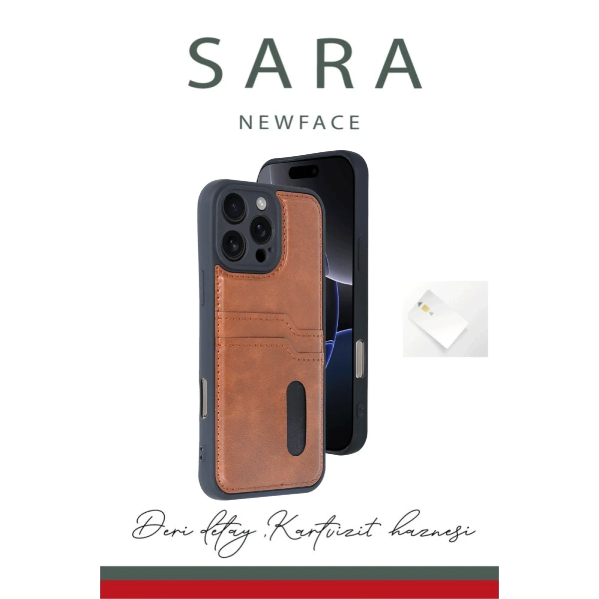 Modern tasarım ve işlevselliği bir araya getiren Sara Kartvizitli Deri Kılıf, telefonunuzu korurken aynı zamanda kart ve nakit taşıma ihtiyacınızı da pratik bir şekilde karşılar. Günlük kullanımda şıklık ve konfor arayan kullanıcılar için özel olarak tasarlandı.