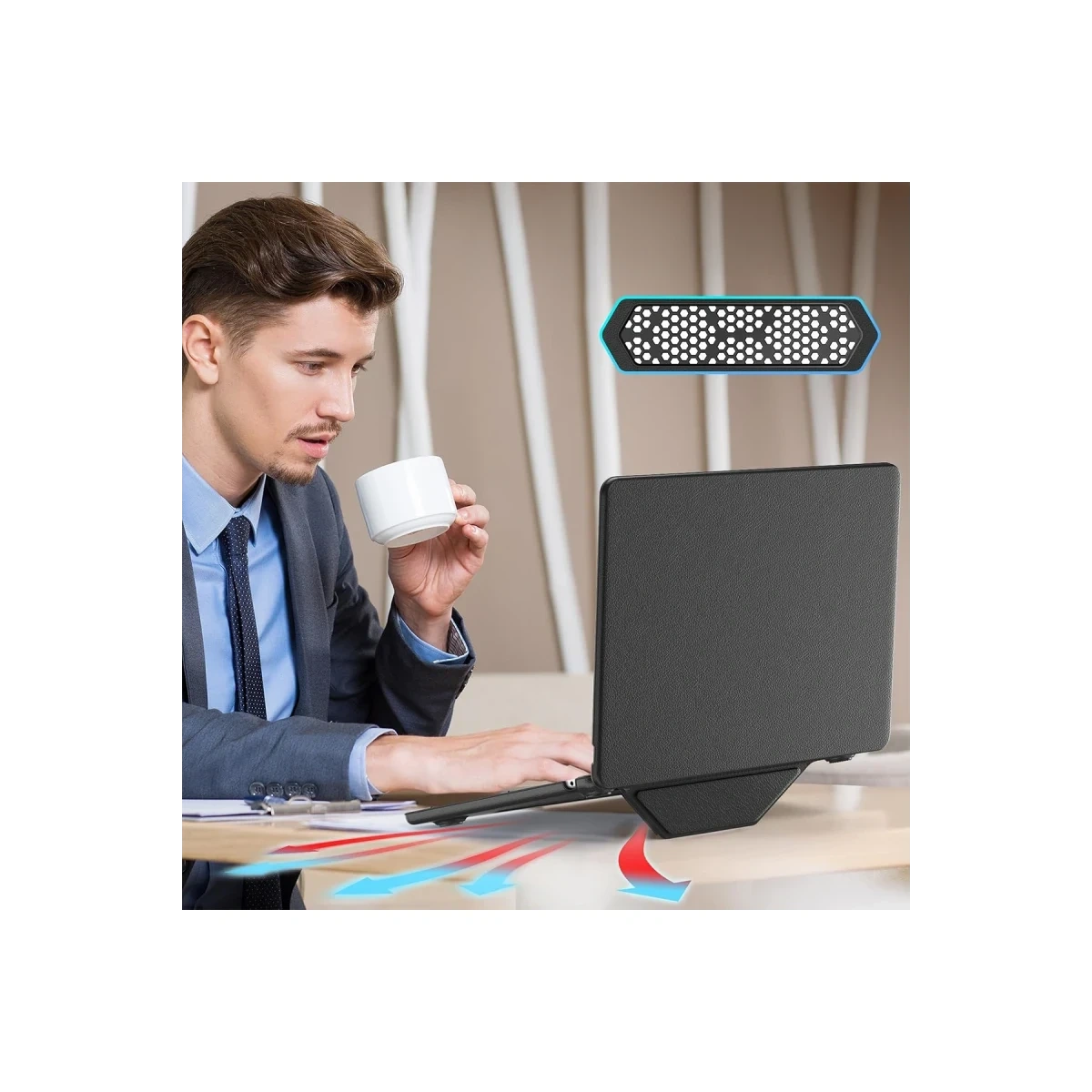 Şık PU deri yüzeyiyle profesyonel bir görünüm sunar. İş ortamları için ideal olan bu tasarım, cihaza hem şıklık hem de zarif bir estetik kazandırır.