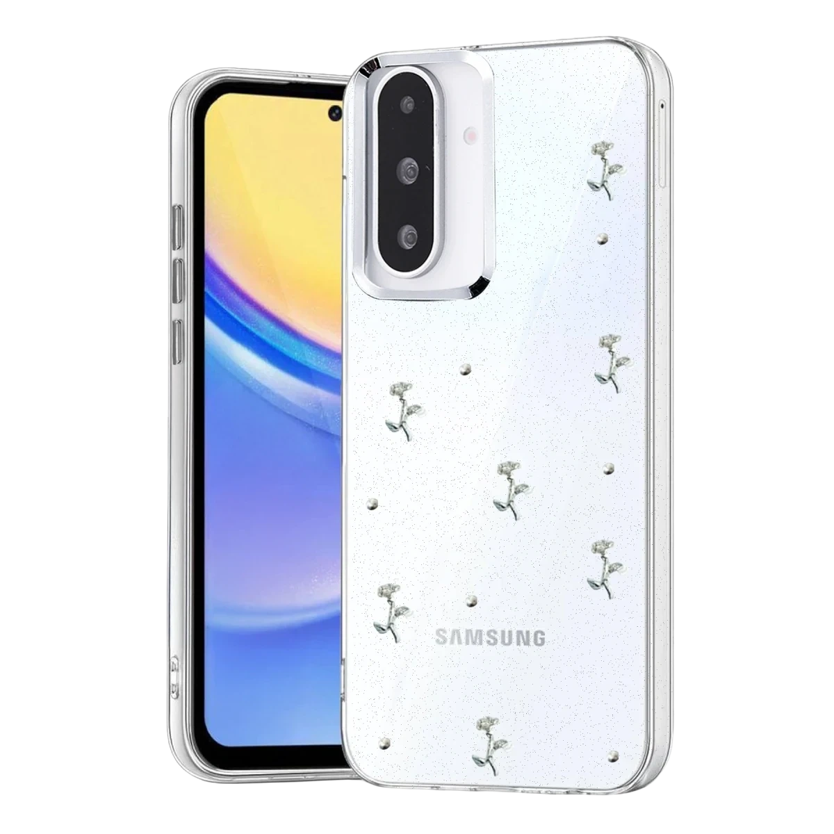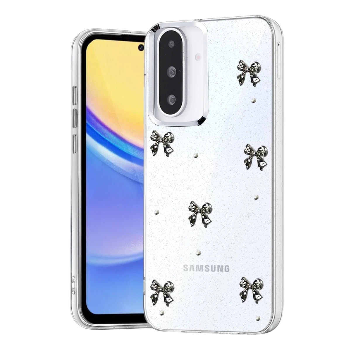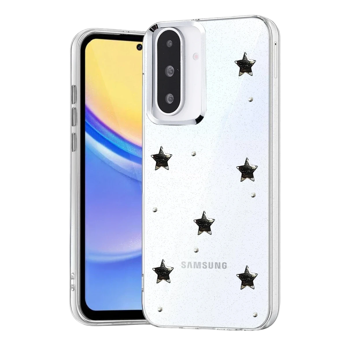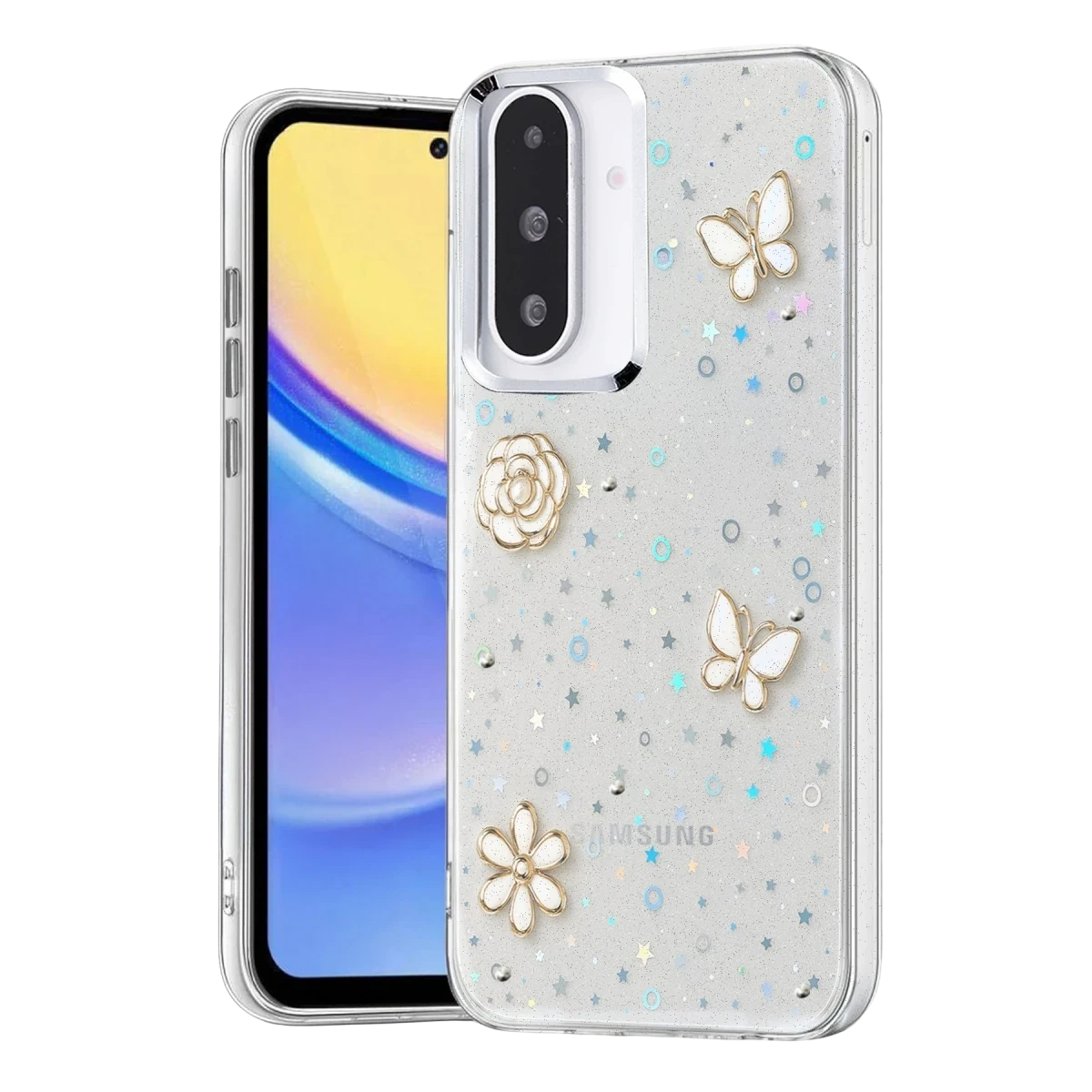 Fiyonk, yıldız, kelebek, lale, çiçek, kalp ve gül gibi zarif detaylarla süslenmiş bu kapak; simli, şeffaf tasarımıyla estetik ve korumayı bir araya getiriyor. Telefonunuzu yalnızca dış etkenlerden korumakla kalmaz, aynı zamanda ona göz alıcı bir stil kazandırır. Günlük kullanımda dikkat çeken tasarımı sayesinde cihazınızın şıklığı öne çıkar.